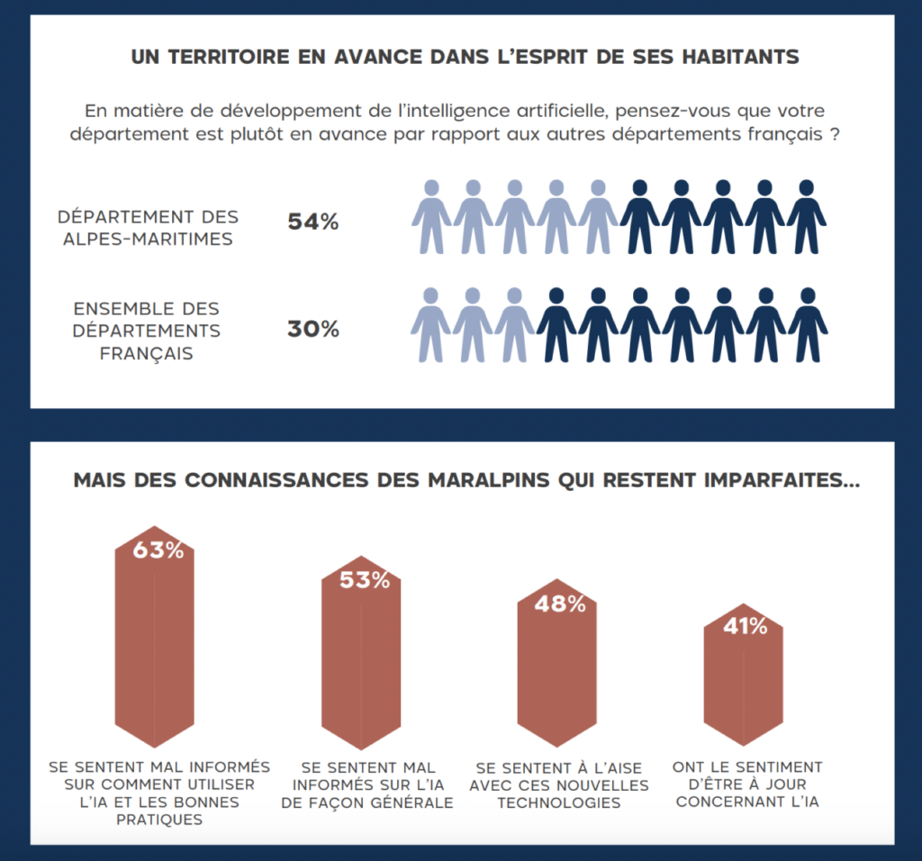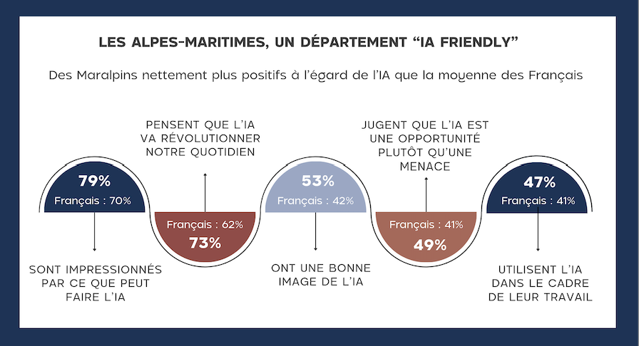 L’enquête, menée auprès de 1 001 Maralpins et 1 005 Français, montre que les habitants du Département des Alpes-Maritimes abordent l’IA avec davantage de confiance, tout en conservant une certaine vigilance.