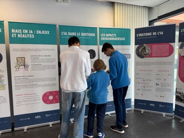 À travers des panneaux illustrés, elle retrace l’histoire de l’intelligence artificielle, son fonctionnement, ses usages au quotidien et ses impacts éthiques et environnementaux.